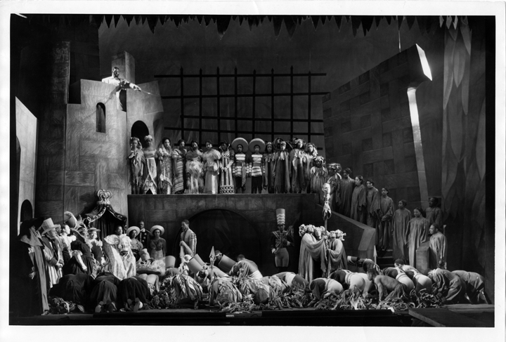 The baritone stops. The prisoner’s wild laugh comes over on soundtrack.