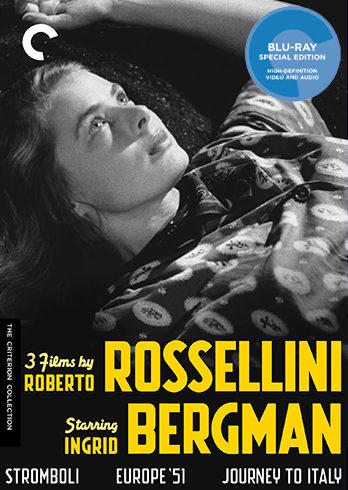 3 Films by Roberto Rossellini Starring Ingrid Bergman (Criterion). A superb, definitive edition of three very personal masterworks, with a good many critical, biographical, and historical supplements by many of the best Rossellini scholars and critics, including Adriano Aprà, Richard Brody, Fred Camper, Elena Dagrada, Tag Gallagher, Dina Iordanova, Laura Mulvey, James Quandt, and Paul Thomas, not to mention pertinent contributions by Guy Maddin, Martin Scorsese, and both Rossellini and Bergman and many family members.