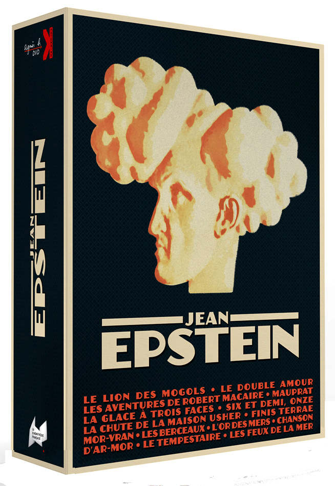 Coffret Jean Epstein (La Cinémathèque Française, Potemkine Films). Produced by Potemkine Film, the Cinémathèque Française, and Agnès B., the Jean Epstein DVD box set offers for the first time an opportunity to follow the cinematographic path of the French director. With the films made under the Film Albatros label (1924-1925) as a starting point, the review continues with Epstein’s own productions (1926-1928) and those directed in the period from 1928 to 1948, a series characterized by freedom from financial or narrative constraints. Every film included has been restored and musical accompaniments, written specially for this edition, accompany the selection of silent films. A series of supplements and a profusely illustrated 160-page book completes the set of eight DVDs.