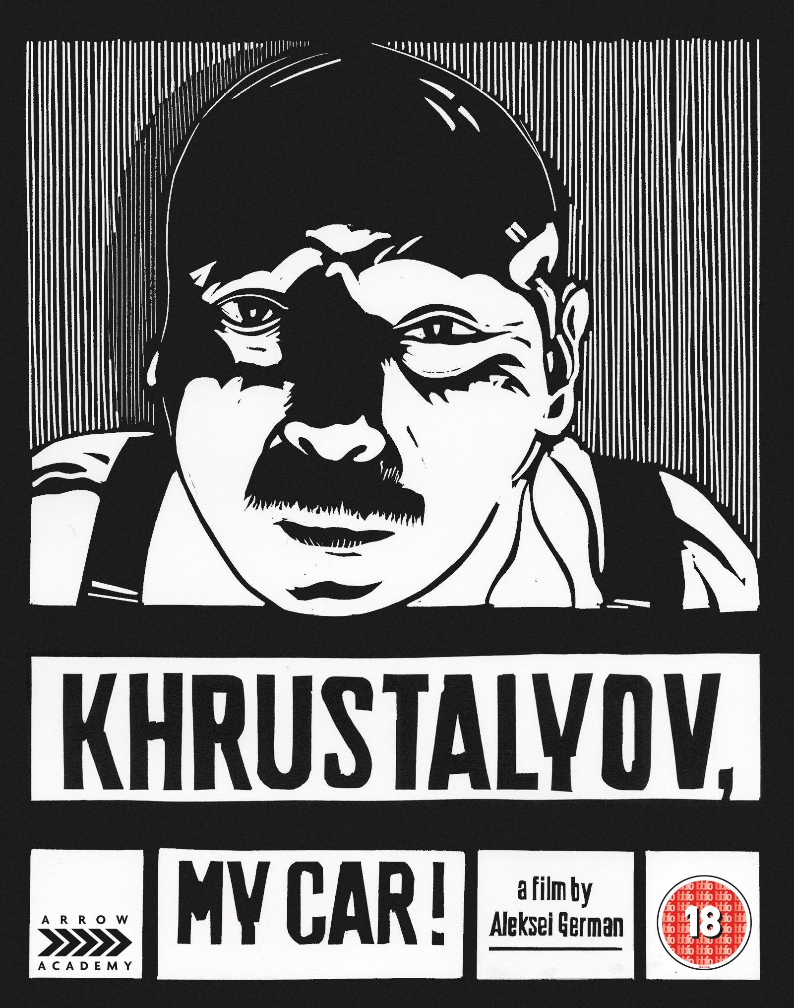 Aleksei German’s Khrustalyov, My Car! (1998) has just been released in a limited edition Blu-ray box set byArrow Academy, a UK label that threatens, on occasion,to match or surpass the stateside Criterion at some of their own games. What’s exhilarating to me about this all-region package (going for 27.73quid at Amazon UK)is how much it manages to explain, and thereby dissipate, the difficulties in one of the most exciting and vexing Russian masterpieces of the modern era by explicating many of the historical conditions that gave rise to it. There’s only one disc in the box, but that disc contains—along with a restoration of the 150-minute feature in two-channel stereo—an audio commentary by Daniel Bird, a detailed 26-minute audiovisual essay by Eugenie Zvonkine, a 44-minute feature by Russian historian Jonathan Brent about the “Doctors’ Plot” (the fallacious conspiracy that is the crux of the film’s narrative), and a 47-minute interview with German by the late Ron Holloway. There’s also a 58-page booklet and a two-sided foldout poster.