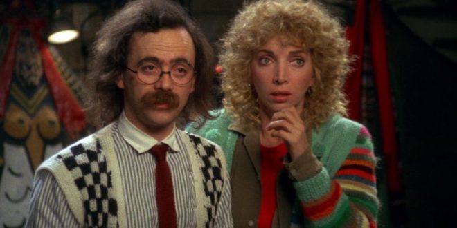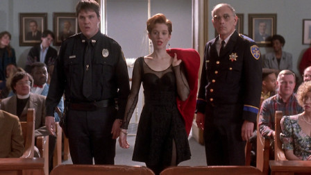 My fond memories of writer-director Allan Moyle’s Pump Up the Volume(1990) led me to ask for a review copy of the Kino Lorber Blu-ray of The Gun in Betty Lou’s Handbag (1992), which Moyle directed (very adroitly) from a script by Grace Cary Bickley. It’s a comedy-thriller about a neglected, mousy librarian (Penelope Ann Miller) who confesses to a sleazy motel murder she didn’t commit so that her cop husband (Eric Thal) will finally notice her — a concept about as silly as Nichetti’s extraterrestrial dance disease (I wonder how many Italians will laugh at it), but Moyle, Bickley, and a spirited secondary cast (which includes Julianne Moore, Alfre Woodard, Cathy Moriarty, and Meat Loaf, among others) all make the most of it.