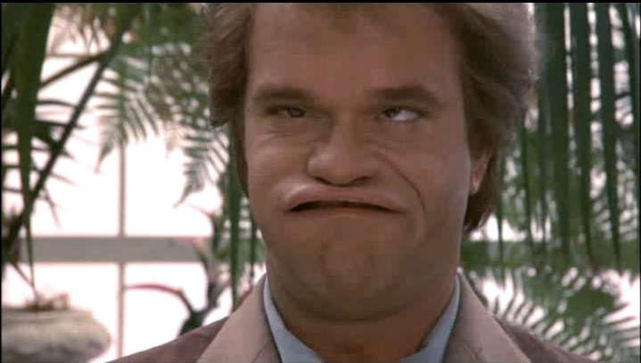 Much as the conceit of Veronica Lake and Cecil Kellaway in I Married a Witch (see above) being represented by smoke in a couple of bottles is a triumph of sound transforming image through the medium of our imaginations, Innerspace uses intercutting to convince us that a brash, miniaturized Navy pilot (Dennis Quaid) driving a sort of rocket ship accidentally gets injected into the bloodstream of a hypochondriac supermarket clerk (Martin Short) instead of a laboratory animal. Apart from some Oscar-winning visual effects which underline this curious state of affairs, this is basically a matter of showing us Short and Quaid in separate shots and asking our imaginations to fill in the rest, so that fantasy is essentially created in the mind of the beholder. This takes on more flavor and narrative complications once Quaid and Short find they can address one another and influence each other’s behavior and actions (such as when they romantically compete, after a fashion, for Meg Ryan). By the time various villains also get miniaturized or semi-miniaturized (including Kevin McCarthy and Fiona Lewis), the characters have essentially taken over the movie.