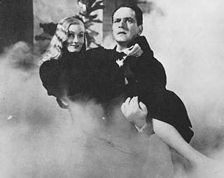 I Married a Witch (René Clair, 1942). After a prissy 17th century puritan (Fredric March) fingers Jennifer (Veronica Lake), a leggy blond witch who enticed him into a hayloft, she and her father (Cecil Kellaway) get burnt at the stake, vowing in revenge that all his descendents will have unhappy marriages. And so they do, until the present — when their smoky essences are freed from an oak tree and, once she’s back in human form, she sets about winning prissy gubernatorial candidate Wally Wooley (March again) away from his shrewish fiancée (Susan Hayward), contriving for him to rescue her own naked body from a burning hotel.