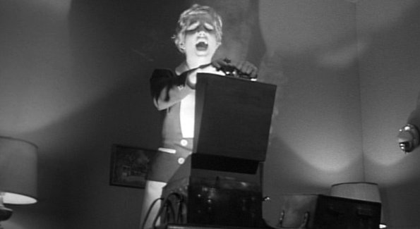 Paris Belongs to Us is visibly influenced by Lang as well as by Robert Aldrich’s noir thriller Kiss Me Deadly (1955), a violent detective story in which anxieties about the atomic bomb are dovetailed into the myth of Pandora’s Box. Both films follow an aesthetic for conspiracy theories by positing white, the fusion of all other colors, as the “final solution” for rendering the illegibility of modern life in legible form. In Aldrich’s film, the quest is for a strongbox containing plutonium that emits a blinding white light when opened and ultimately unleashes a nuclear holocaust that concludes the movie. Similarly, a pivotal sequence in Paris Belongs to Us shows several characters watching the Tower of Babel sequence in Lang’s Metropolis until the film suddenly breaks and they’re confronted by the gaping stare of a blank white screen. The Tower of Babel myth evokes Pynchon’s notion of anti-paranoia—the chaos arising from the multiplicity of languages and the breakdown of communication–just as surely as Pandora’s Box posits the solution to that impasse in apocalyptic terms. Like the whiteness of the bathroom where The Conversation’s bugger arrives at his own bloody conclusion–a climax that can be traced back to the bathroom murders of Les Diaboliques and Psycho–these white enamel revelations become in effect blank sheets of paper on which the paranoid message gets written.